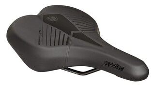 De COMFORT-modellen zijn de ideale zadels voor stads- en omafietsen, cruisers en andere soorten fietsen met een meer rechte zithouding. Hierbij wordt een groot deel van het lichaamsgewicht gedragen door het zadel, dat door het grotere zadeloppervlak de druk op de zitbotten optimaal verdeelt. De Ergotec Flex T-Zone past het zadeloppervlak individueel aan de menselijke anatomie aan. De gesloten Ergotec Comfort Cutout Plus functies onder de zitbotjes absorberen schokken zoals bij een trampoline. De Ergotec reliëfrand en de Ergotec Comfort Cutout ontlasten het perineum en het schaambeen. De Comfort zadels zijn verkrijgbaar in soft en medium en in twee breedtes (M en L). Alle ES COMFORT-zadels zijn geschikt voor zowel conventionele als e-bikes. afmeting: 265 x 190 mm medium bekleding zadeldek: PU kleur: zwart railmateriaal: staal stiksels: nee gewicht: ~425 g