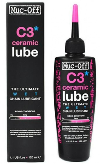 Het geheim van Muc-Offs kettingolie C3 Ceramic Wet Chain Lube zit in de unieke keramische coating dat zorgt voor een ongelofelijk duurzame werking. De innovatieve formule in de olie maakt daarnaast ook gebruik van Boron Nitride en Fluoro Polymers om een lage frictie en de best mogelijke prestaties te garanderen. De waterproof kwaliteiten van deze kettingolie zorgt er ook voor dat je ketting altijd de beste prestaties blijft leveren, ook onder slechte weersomstandigheden. Wanneer je geen zin hebt om telkens maar je ketting in te smeren en toch de best mogelijke schakelprestaties met een lage frictie wilt hebben, kijk dan niet verder. De C3 Ceramic Wet Lube komt in een ergonomische flacon met een pipet systeem welke makkelijk is te gebruiken. De olie is voor 95% biologisch afbreekbaar en is ideaal voor racefietsen, cyclecross en mountainbikes.