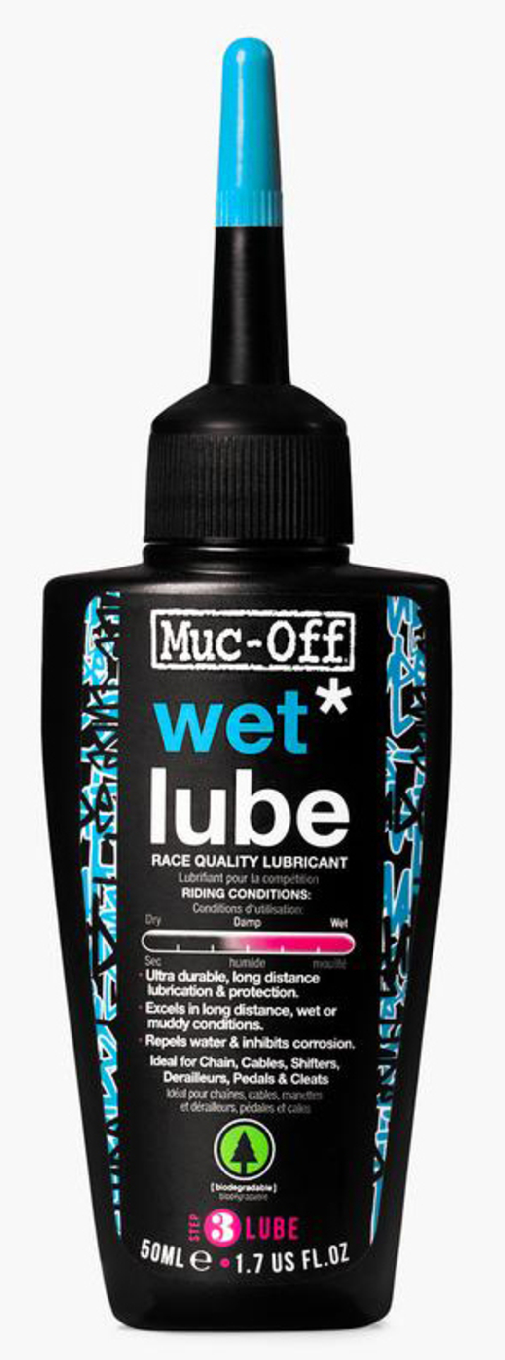 Muc-Off Wet Chain Lube is een extreme duurzame, lang werkende fietsketting smeerolie die speciaal is ontwikkeld voor gebruik in natte en vieze omstandigheden. Muc-Offs state-of-the-art formule is volledig gemaakt van natuurlijke producten van hernieuwbare bronnen. Muc-Off Wet Chain Lube dringt diep door tussen de kettingschakels om een langdurige bescherming en werking te verzekeren. De algehele extreme druk toevoeging geeft een mooie laag over elke link om soepel schakelen te verzekeren en een effectieve ketting te creëren.