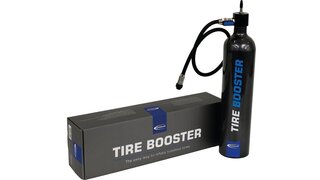 Met de nieuwe TIRE BOOSTER is de montage van Tubeless banden gemakkelijk en betrouwbaar, ook zonder compressor. Met de kracht van elf bar druk, past iedere band direct veilig op de velg en dicht de band gelijkmatig af. Voor een nog grotere luchtdoorvoer zorgt de speciale adapter. De 435 gram lichte, handige fles is het perfecte hulpmiddel voor de Tubeless montage, thuis en onderweg.